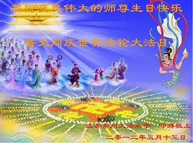 洪恩浩荡天门开, 主佛慈悲救众来。 毒世赤龙人心变, 法徒正念展风采。 黑龙江省安达市大法弟子敬上 二零一二年五月十三日 吉林省长春大法弟子专一修炼祝师父生日快乐!