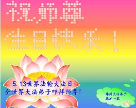 辽宁省沈阳大法弟子祝师父生日快乐暨世界法轮大法日二十周年
