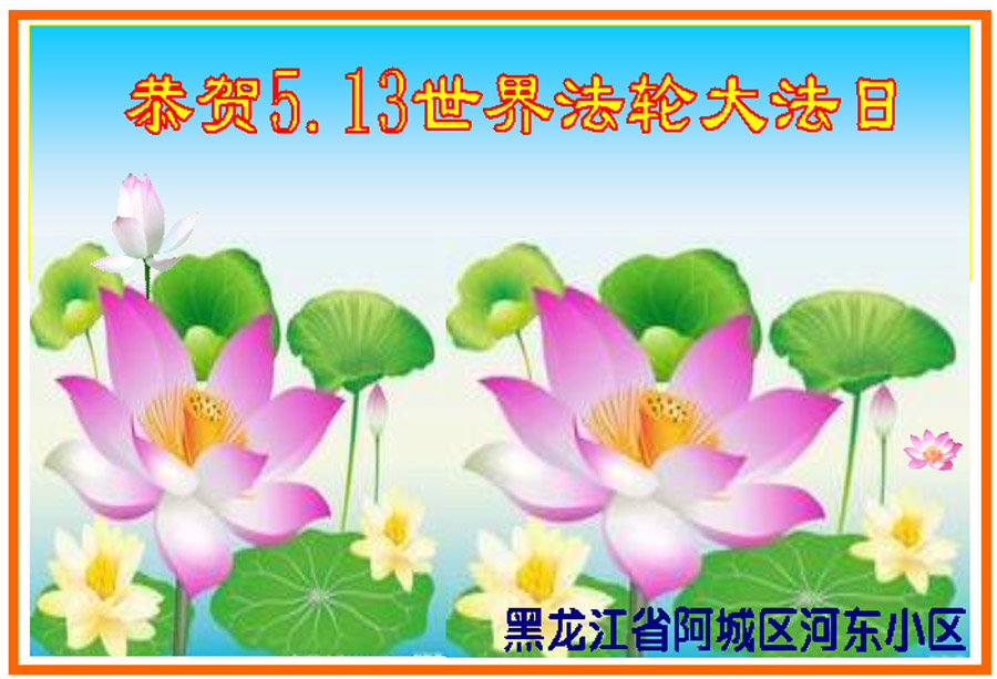黑龙江省哈尔滨大法弟子普天同庆、同祝世界法轮大法日!