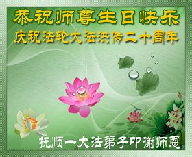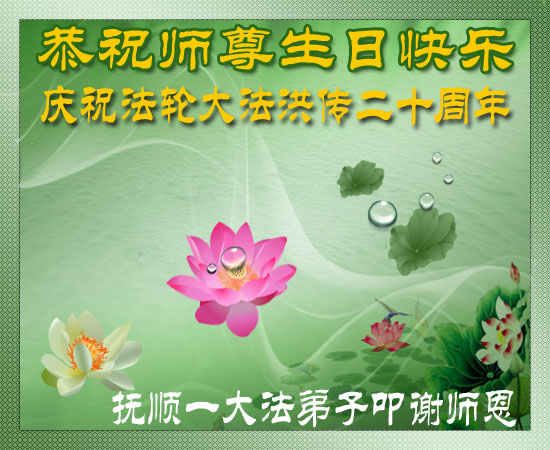 辽宁省抚顺一大法弟子贺法轮大法洪传世间二十周年,并恭祝师尊生日快乐!