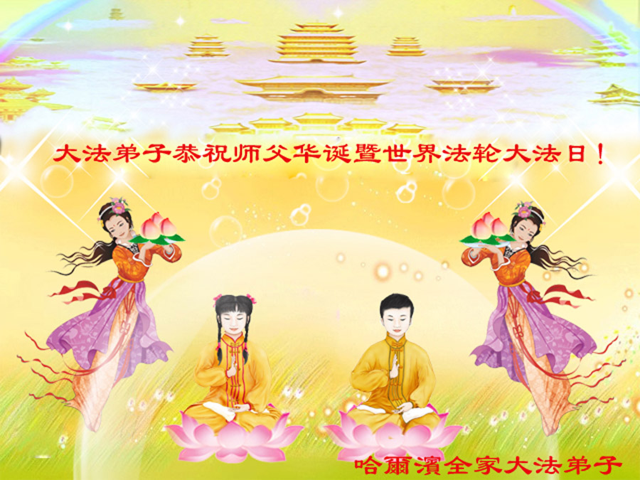 黑龙江一家大法弟子恭祝师父华诞、法轮大法洪传二十周年!