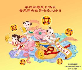 大陆国税系统弟子祝贺大法洪传二十周年,祝师尊生日快乐。 辽宁省沈阳警察及家属大法弟子:恭祝世界法轮大法日!