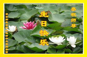 沈阳市警察及家属大法弟子:恭祝世界法轮大法日! 恭祝法轮大法洪传二十周年! 恭祝慈悲伟大的李洪志师父六十一华诞! 江苏省南京军区复员军人大法弟子恭祝师尊生日快乐!并贺法轮大法日!