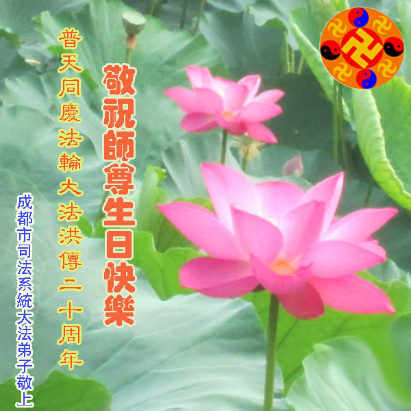 四川省成都司法系统大法弟子恭祝师尊生日快乐!普天同庆法轮大法洪传二十周年!