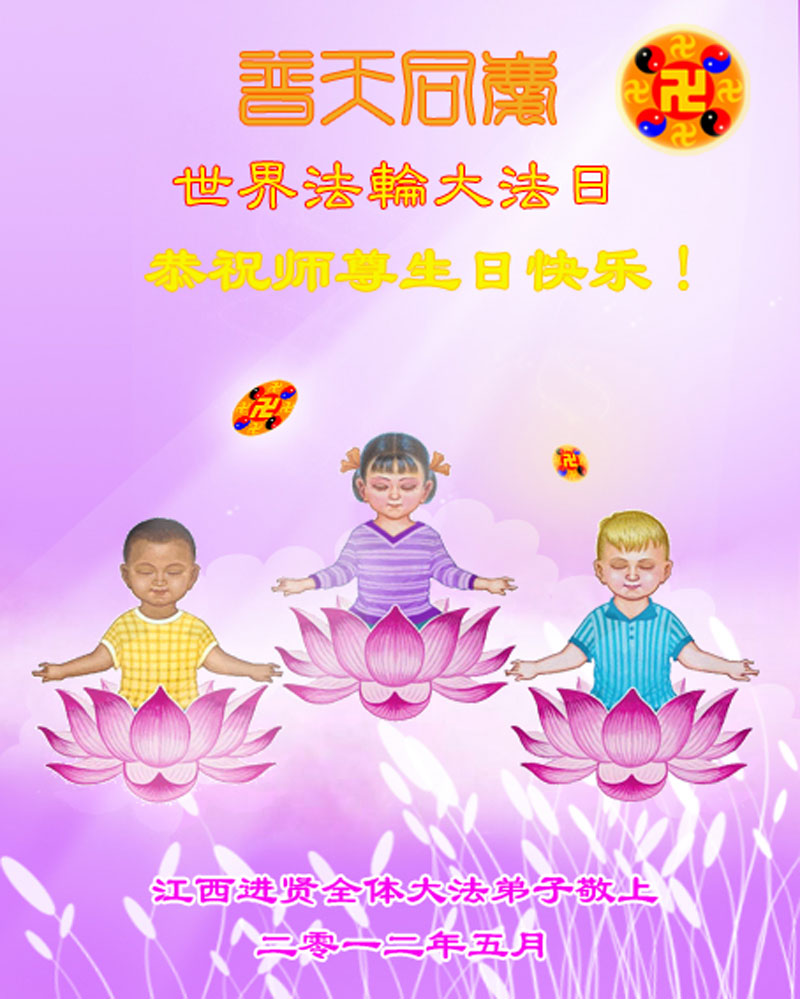 恭祝师尊生日快乐!贺普天同庆世界法轮大法日! 弟子会坚持实修,回报师恩。 江西九江大法弟子 2012年5月8日 江西九江大法弟子恭祝师尊生日快乐