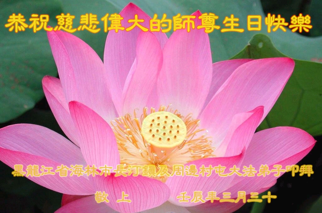 黑龙江省牡丹江市海林市长汀镇及周边村屯大法弟子恭祝慈悲伟大的师父生日快乐!