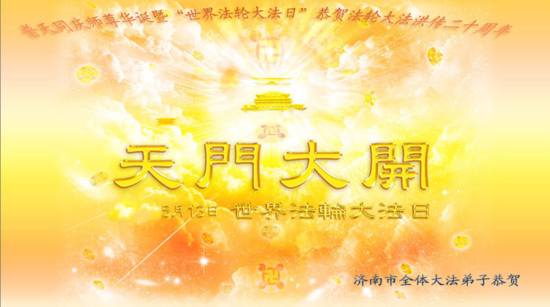 山东省济南全体大法弟子普天同庆师尊华诞暨世界法轮大法日!恭贺法轮大法洪传二十周年!