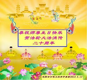 辽宁省大连沙区大法弟子祝师尊生日快乐!庆祝世界法轮大法洪传二十周年!