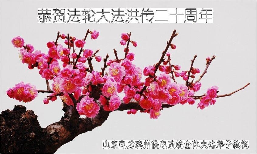同祝同贺大法日 灭尽邪恶救众生 坚定做好三件事 助师正法谢师恩 普天同庆五一三 弟子回归忆师恩 修炼路上再精進 完成使命上大穹 山东电力滨州供电系统全体大法弟子恭贺法轮大法洪传二十周年!