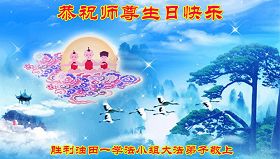 武汉市铁路全体大法弟子在大法洪传二十周年之际恭贺师尊生日快乐!请师尊放心,我们一定坚定实修助师正法到底。 大陆一弟子及家人恭祝师父生日快乐!热烈庆祝师尊传法二十周年和世界法轮大法日!