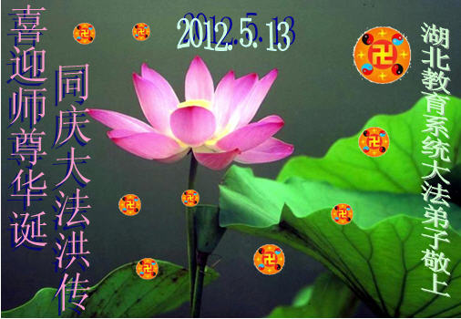 四川广汉石油系统大法弟子恭贺慈悲伟大的师尊61华诞和5.13世界法轮大法日! 师尊:祝您生日快乐!我们一定修好自己,做好三件事,跟上正法進程。 重庆市教育系统全体大法弟子恭祝师尊生日快乐!