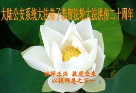 中钢集团衡阳重机有限公司全体大法弟子庆贺法轮大法洪传二十周年暨世界法轮大法 日!恭祝慈悲伟大的师尊生日快乐! 大陆公安系统大法弟子恭贺法轮大法洪传二十周年