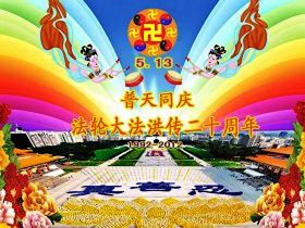 恭贺法轮大法洪传二十周年!普天同庆5.13世界法轮大法日! 黑龙江省哈尔滨市双城市一铁路系统大法弟子恭祝师尊生日快乐!