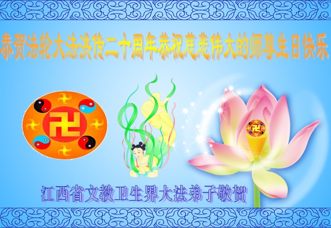 江西省文教卫生界大法弟子恭贺世界法轮大法日并恭祝慈悲伟大的师尊生日快乐!