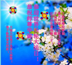 辽宁省大连大法弟子恭祝世界法轮大法日,祝师尊生日快乐!
