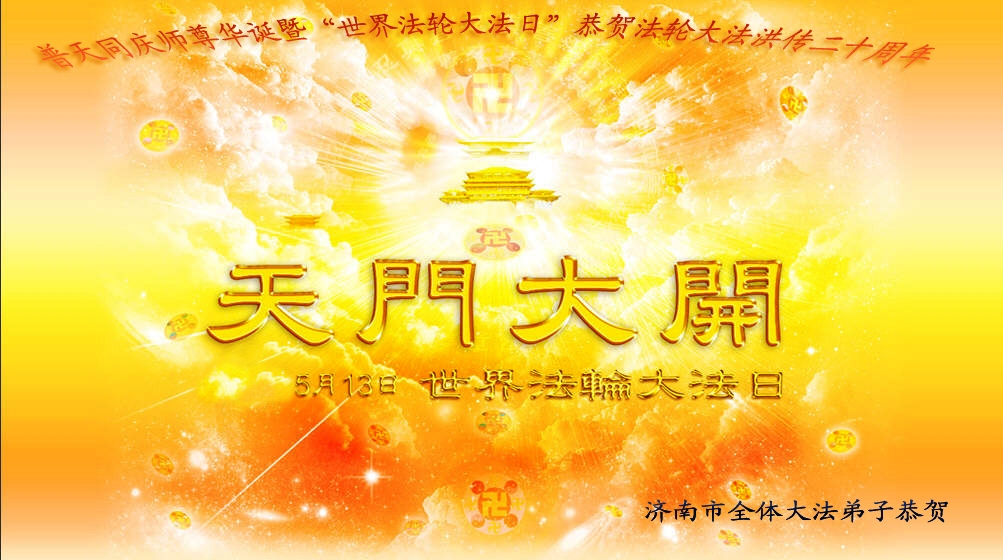 山东枣庄大法弟子恭祝师父华诞!庆祝大法洪传二十周年!