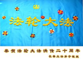 吉林省吉林市大法弟子恭祝慈悲伟大的师尊生日快乐!恭贺法轮佛法洪传二十周年!