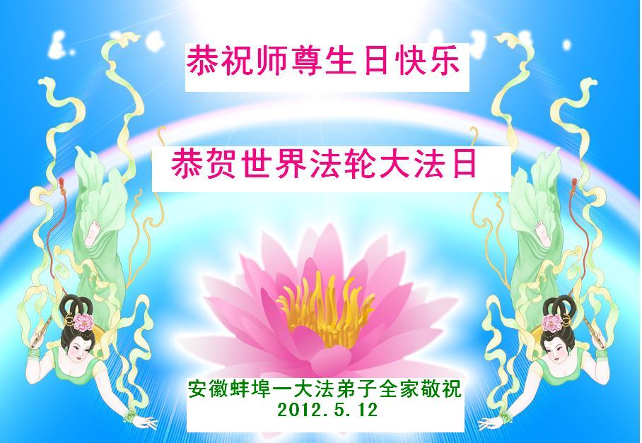 上海一弟子 2012年5月12日 安徽省蚌埠市怀远县全体大法弟子恭祝慈悲伟大的师父生日快乐!