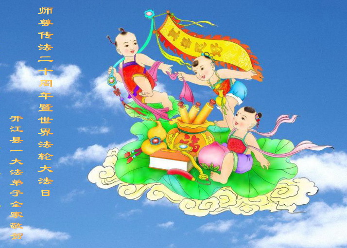 四川省达州市开江县一大法弟子全家敬贺师尊传法二十周年暨世界法轮大法日