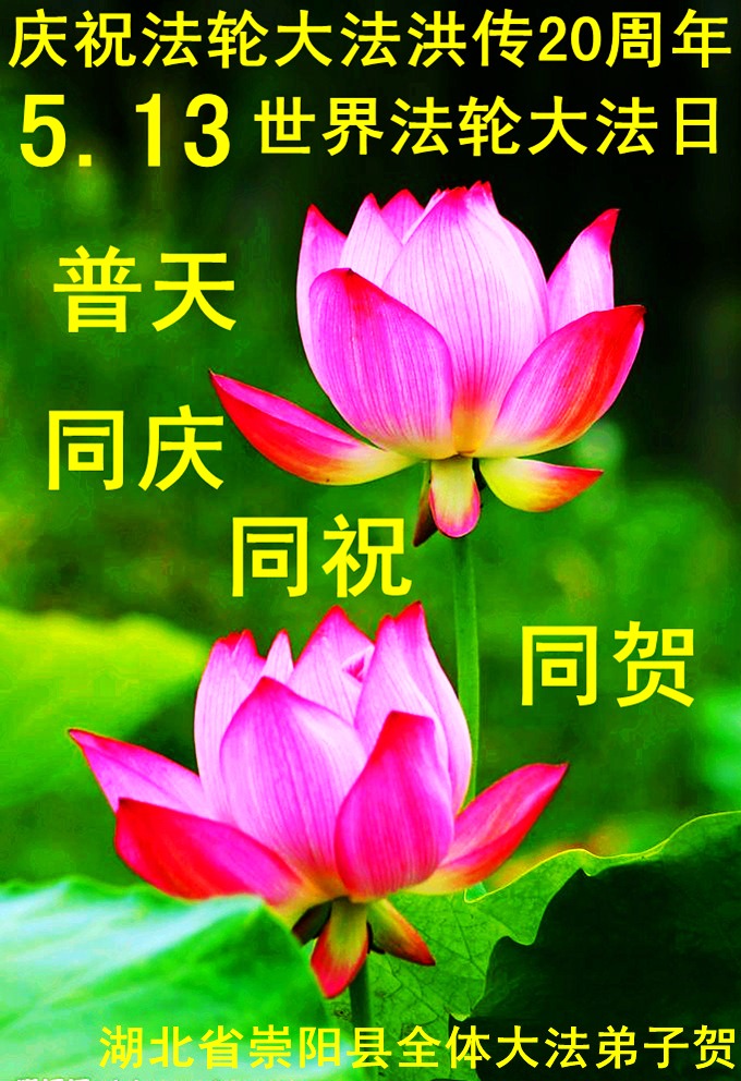同祝同贺法轮大法洪传二十周年及世界法轮大法日! 湖北恩施大法弟子恭祝慈悲伟大师尊生日快乐!