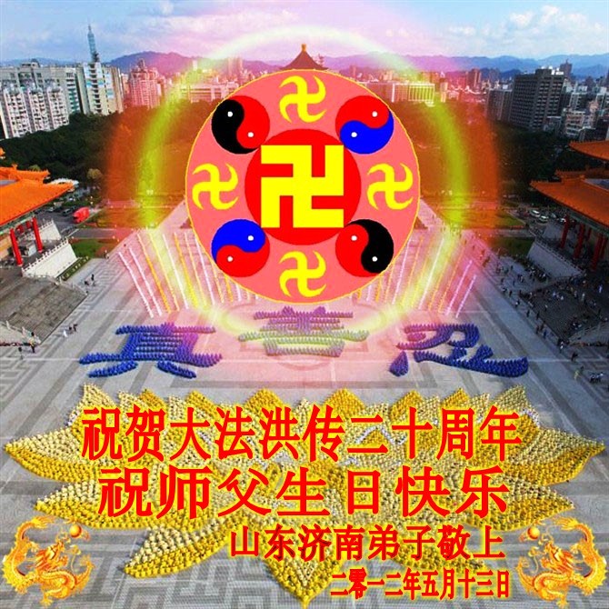 山东济南大法弟子恭祝师父华诞!师父辛苦了!祝贺大法洪传二十周年!! 山东济南弟子敬上 二零一二年五月十三日