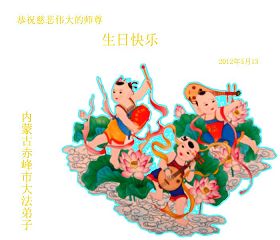 二零一二年五月十二日 锡盟一小镇的大法弟子祝慈悲伟大的师尊生日快乐!