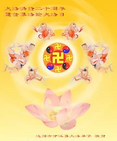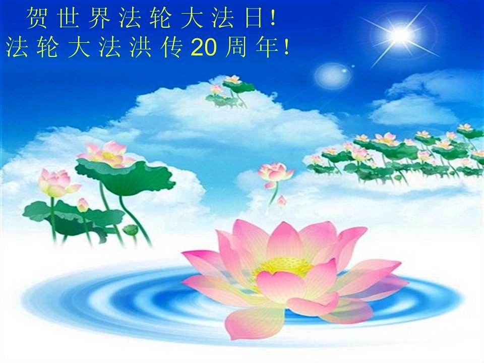 恭祝师尊传法二十周年!同祝世界法轮大法日! 我们一定精進实修,学好法,多学法,认真做好三件事,坚修大法到底,跟师父回家! 大陆大法弟子恭贺世界法轮大法日