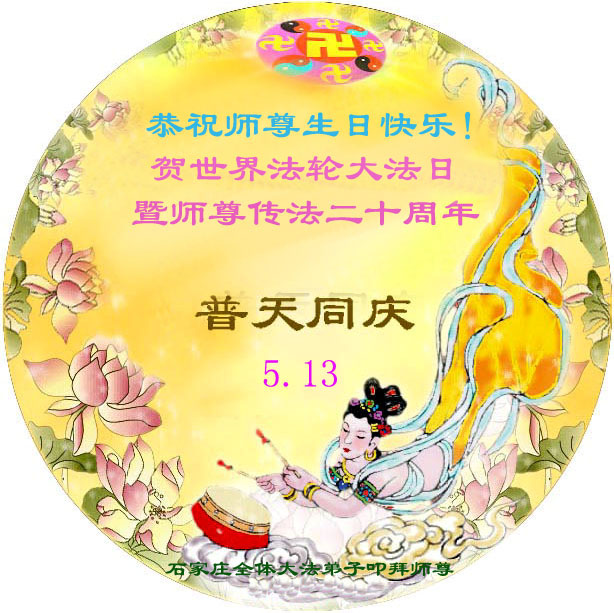河北省石家庄全体大法弟子恭祝师尊生日快乐!庆祝世界法轮大法日暨师尊传法二十周年!