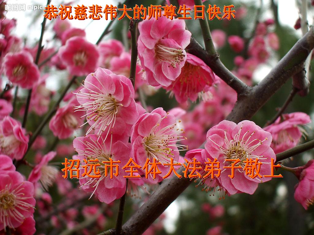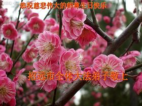 我们辽宁省大连大法弟子全家向慈悲伟大的师尊恭贺生日快乐: 我们大连大法弟子盼望师尊早日回到中国,和弟子们团圆,早日和师尊回家! 我们全家感恩师尊的慈悲苦度,一定要好好学法,跟上正法進程,做好三件事,救度众生,修好自己,完成史前誓约! 山东省烟台市招远市全体大法弟子恭祝慈悲伟大的师尊生日快乐!