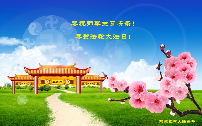 师父家乡大法弟子献给世界法轮大法日!祝师父生日快乐!