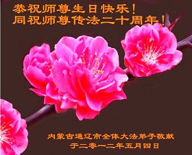内蒙古自治区通辽大法弟子恭祝法轮大法洪传二十周年!祝师父生日快乐!