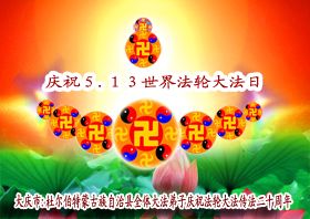 普天同庆513暨大法洪传二十周年! 谢师恩 苍宇更新一念间 危难之中大法传 为救众生脱苦海 主佛慈悲驾法船 大法开传二十年 邪恶疯狂把路拦 欺世谎言谤天法 历尽艰辛与魔难 普天同庆5.13 喜得大法读金篇 唤醒世人明法理 锤炼寒梅亿万千 迎风挺立意志坚 助师正法了洪愿 合十叩拜谢师恩 同化新宇随师还 合十叩拜 2012-5-12 吉林市一学法小组全体跪敬上 山东省济南大法弟子恭祝师尊生日快乐!恭贺法轮大法洪传二十周年!