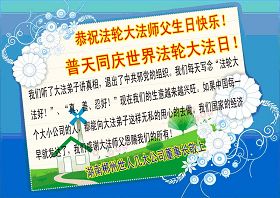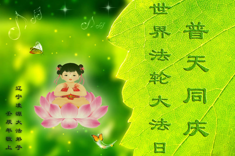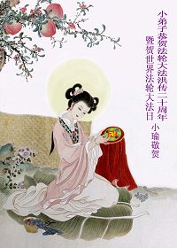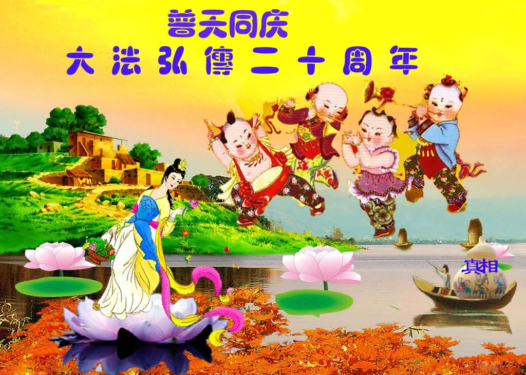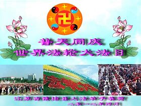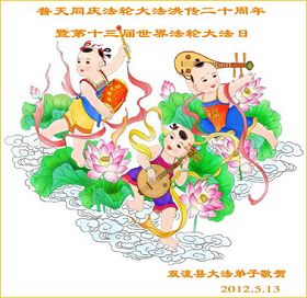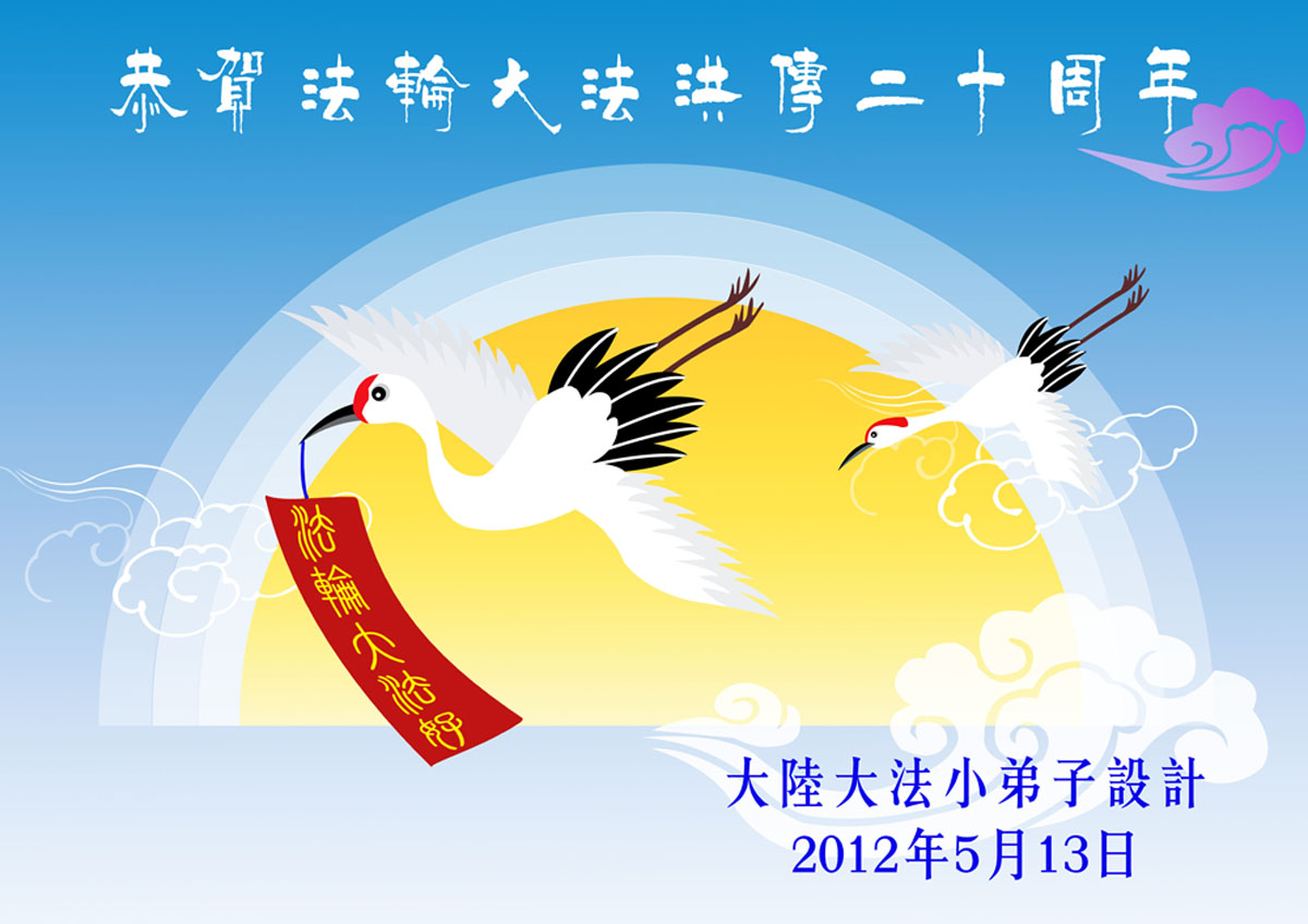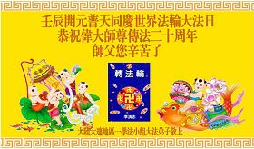 大法日 大法洪传千古 历经沧桑百苦 勃然生机万物 从今欢呼 法轮大法永固 大陆大法小弟子恭贺法轮大法洪传二十周年!