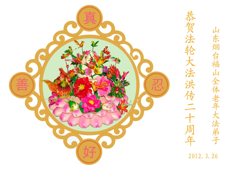 山东烟台大法弟子恭贺法轮大法洪传二十周年!