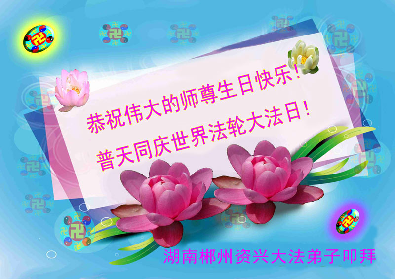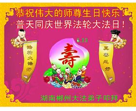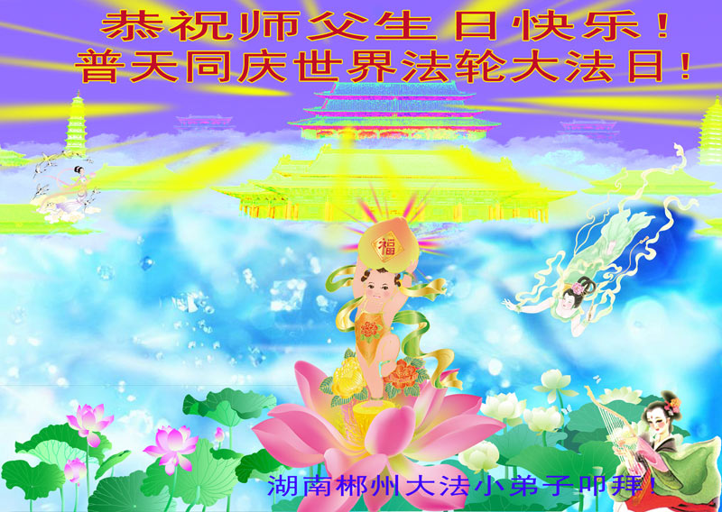 湖南郴州大法小弟子恭祝师父生日快乐!普天同庆世界法轮大法日!