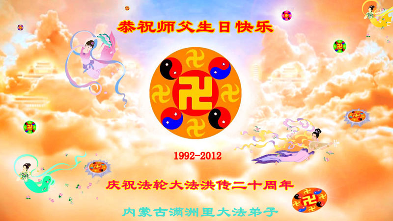 内蒙古满洲里大法弟子向慈悲伟大的师父问好!恭祝师父生日快乐!庆祝法轮大法洪传二十周年!