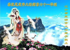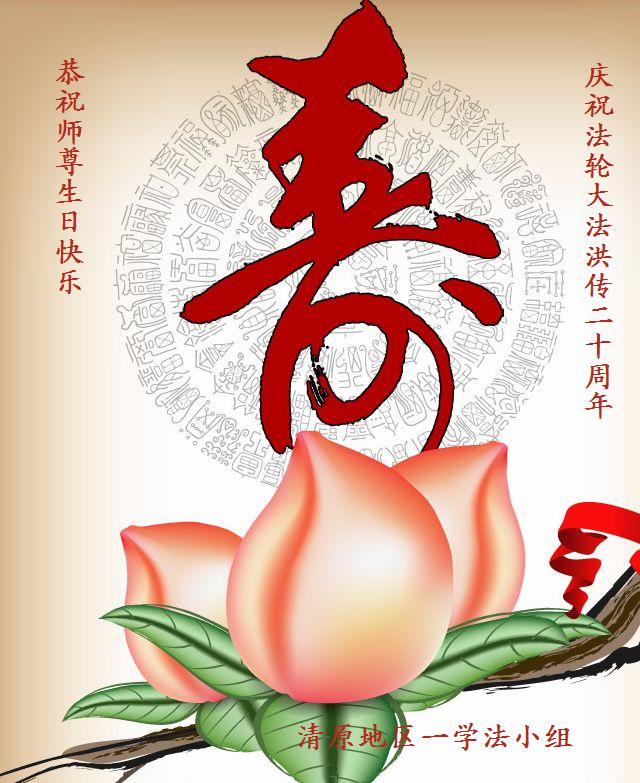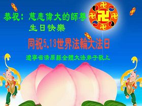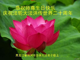 辽宁省抚顺市清原县大法弟子起莲与升莲恭祝伟大的师尊生日快乐!辽宁阜新全体大法弟子祝伟大师尊生日快乐!辽宁省葫芦岛大法弟子祝师父生日快乐!吉林大法弟子全家祝师尊生日快乐!吉林省长春老年夫妻大法弟子恭祝慈悲师尊华诞快乐!祝贺世界法轮大法日!我们是一对老年大法弟子,因为时时刻刻都得到师父在身边呵护,每当遇到大难时总有师父点悟,甚至师父安排同修弟子来帮助我们学法,学电脑,使我们跟上修炼進程。我们一定按照师父的教导:向内找,找到不足把它修去。在修炼路上奋起直追!绝不辜负师尊的教导。下面用几句话来结尾。 幸得大法十八载 师尊呵护在身边 八旬老夫快加鞭 七旬贤妻更精進 圣王降世传大法 师恩浩荡难报答 红魔解体在眼前 普天同庆随师还 吉林市昌邑区一学法小组全体大法弟子恭贺伟大的师尊生日快乐!伟大的师尊:您好!我们学法小组全体大法弟子就是在您的慈悲呵护下才能走到今天。在这即将法正人间的时刻,我们全体大法弟子一定要谨遵您的教诲,讲清真相、救人、多救人,走好今后的每一步。 吉林市昌邑区一家全家恭祝伟大的师尊生日快乐!伟大的师尊:您好!我们全家的大法弟子只有谨遵您的教诲,在做好三件事、讲清真相、多救人的这条路上走的更好,跟您圆满回家。 辽宁省沈阳市辽中县大法弟子同庆世界法轮大法日!恭祝师尊生日快乐!辽宁省沈阳市辽中县大法弟子同庆5•13世界法轮大法日!恭祝师尊生日快乐!黑龙江省齐齐哈尔市讷河市全体大法弟子恭祝师尊生日快乐!庆祝大法洪传二十周年!在这普天同庆的时刻,弟子们感谢师父的慈悲苦度。我们讷河全体大法弟子一定要精進再精進,做好三件事,叩谢师恩。 黑龙江省大法弟子祝师尊生日快乐!谢师尊怀慈悲降红尘苦度众生!感弟子修大法超三界精進实修! 辽宁省抚顺市新宾县全体所有大法弟子恭祝师尊生日快乐!师尊辛苦了!新宾县所有大法弟子只能精進再精進,做好三件事,多救度众生,才能报答师尊的救度之恩。 黑龙江省绥化市绥棱县大法弟子恭祝师尊生日快乐!辽宁省沈阳大法弟子沈春祝师父生日快乐!又是一年春天来 师父华诞徒心开 手捧鲜花敬师父 大法徒向师表白 多看书向内找心 做好该做三件事 弥补给法抹的黑 邪恶迫害钻了空 今后真修学好法 定要圆满随师还 辽宁省大连金州新区一学法点大法弟子恭祝师尊生日快乐!吉林省长春市农安县合隆镇全体大法弟子祝师尊生日快乐!我们想念您!我们一定做好三件事,早日跟师尊回家! 黑龙江省七台河市茄子河区宏伟镇全体大法弟子祝师父生日快乐!黑龙江省佳木斯郊区长发一家三口大法弟子恭祝恩师生日快乐!我们一定谨记师尊的叮咛和慈悲的呵护,利用自己的特长和同修一起学好法,向内找,圆容整体,救度更多的众生,完成誓约,迎恩师回家与师团聚。 吉林省通化市梅河口市全体大法弟子祝师尊生日快乐!辽宁省丹东市大法弟子恭贺师尊生日快乐!弟子代表丹东市许多不能上网表达心情的同修遥祝师尊生日快乐!弟子非常非常想念师尊,祈盼着与师尊早日团圆。 黑龙江省佳木斯市汤原县东部学法小组全体大法弟子恭祝慈悲伟大的师尊生日快乐!吉林省长春一学法小组全体大法弟子祝贺师尊生日快乐!弟子要抓紧时间做好三件事。让师尊多一份欣慰,少一份操劳! 辽宁丹东大法弟子对恭祝伟大慈悲的师父生日快乐!师父洪恩无以为报,我们唯有更精進的修炼。叩谢师恩! 辽宁省抚顺市清原县大法弟子恭祝慈悲伟大的师尊生日快乐!感恩师尊的慈悲苦度!弟子无以为报,只有不断精進,做好三件事,让慈悲伟大的师尊,多一份欣慰,少一份操心。 辽宁省抚顺市清原县大法弟子静净全家及其他弟子恭祝师尊生日快乐!感谢师尊的慈悲苦度!弟子无以为报,只有不断精進,做好三件事,完成大愿,随师还。 辽宁省抚顺市清原县大法弟子恭祝慈悲伟大的师尊生日快乐!同祝5.13世界法轮大法日!感谢恩师的慈悲救度!我们一定谨遵师尊教诲,更精進,多救人。 辽宁省大连大法弟子恭贺世界法轮大法日辽宁省抚顺清原一学法小组的大法弟子及家人祝师尊生日快乐!谢谢师尊的慈悲救度,愿师尊早日回来。 全体辽宁大法弟子恭祝师尊生日快乐!每当我们跌倒,您将我们扶起走正;每当我们身处魔难,您为弟子承受;感恩师尊的慈悲苦度,我们会珍惜师尊用血肉换来的时间,做好三件事,救度更多的众生,唯愿师尊笑。 黑龙江省七台河大法弟子祝师尊生日快乐!尊敬伟大的师尊您好!感谢师尊慈悲苦度! 吉林省长春大法弟子恭祝慈悲伟大的师尊生日快乐!黑龙江省绥化市海伦市大法弟子祝师尊生日快乐!弟子一定跟师父回家,做好三件事,救度更多众生。 黑龙江大法弟子恭祝师尊生日快乐!辽宁鞍山一家庭小资料点恭祝慈悲伟大的师尊生日好!感恩 感恩乱世能得度 感恩业债一身当 感恩生生怨缘解 感恩此生随师还 黑龙江省大庆市龙凤区一学法小组恭贺世界法轮大法日!请师父放心,我们一定不辜负师父的期望和重托,做好三件事,早日圆满跟随师父回家。 黑龙江苇河大法弟子恭祝慈悲伟大的师父生日快乐!师父您辛苦了!祝贺5月13日世界法轮大法日!庆祝法轮大法洪传二十周年!黑龙江省哈尔滨大法弟子恭祝师尊生日快乐!高山挡不住春风 乌云遮不住太阳 东方欲晓 曙光在前 请师尊放心,弟子用正念正行来回报师尊。 黑龙江省哈尔滨大法弟