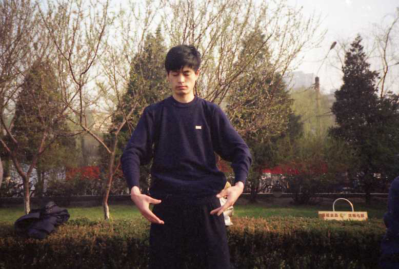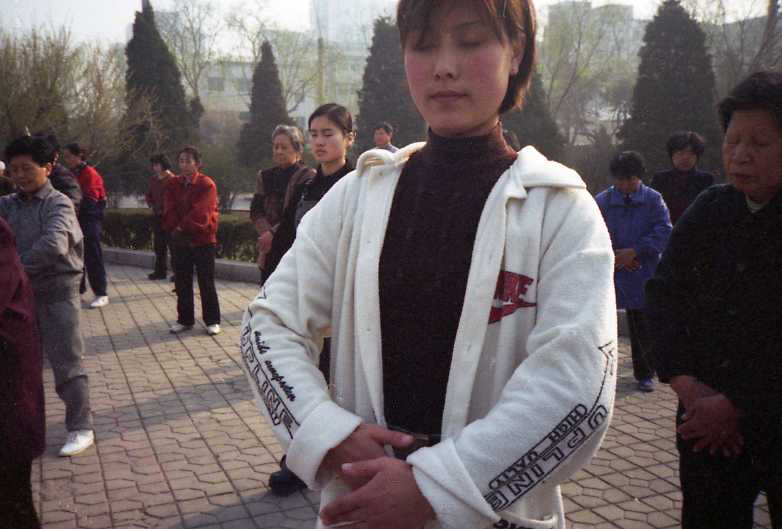 一九九九年四月初,几个炼功点的近千名法轮功学员在沈阳和平广场晨炼——炼功人群中的青年人。 |
