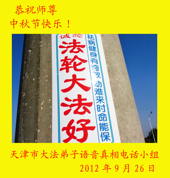 天津市河北区大法弟子 2012.9.27 山东平原一大法弟子敬祝伟大的师父中秋节快乐!