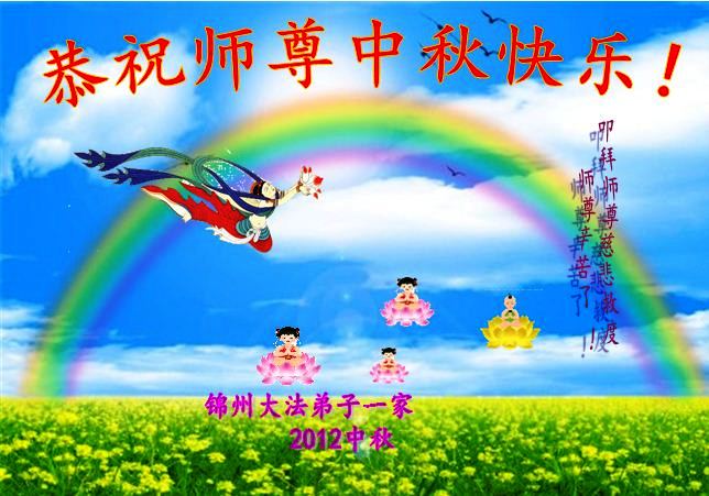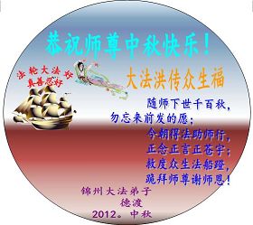 恭祝慈悲伟大的师父中秋节快乐,弟子一定做好三件事,圆满随师还。 黑龙江伊春大法弟子恭祝 2012年9月27日 辽宁省大连大法弟子恭祝师尊中秋快乐!