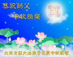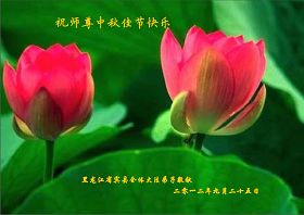北京市丰台区方庄大法弟子恭祝师父中秋节快乐!感谢师尊慈悲苦度之恩! 黑龙江大法弟子姐妹俩人恭祝师尊中秋节快乐!