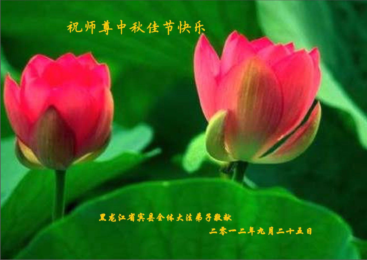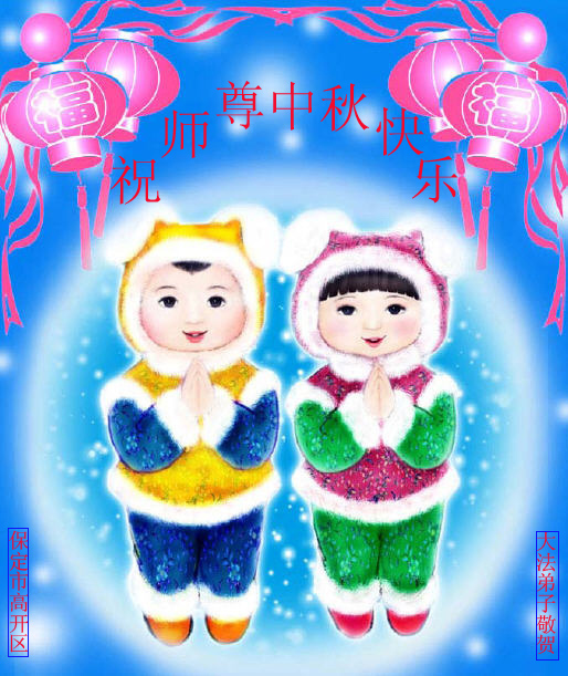 【明慧网二零一二年九月三十日】值此中秋佳节之际,中国大陆和海外的大法弟子纷纷寄来贺卡贺词,恭祝慈悲伟大的师尊中秋快乐,感谢师尊的慈悲救度。以下是部分大陆大法弟子的贺卡和贺词。 河北省秦皇岛姐妹俩大法弟子恭祝师尊中秋节快乐!