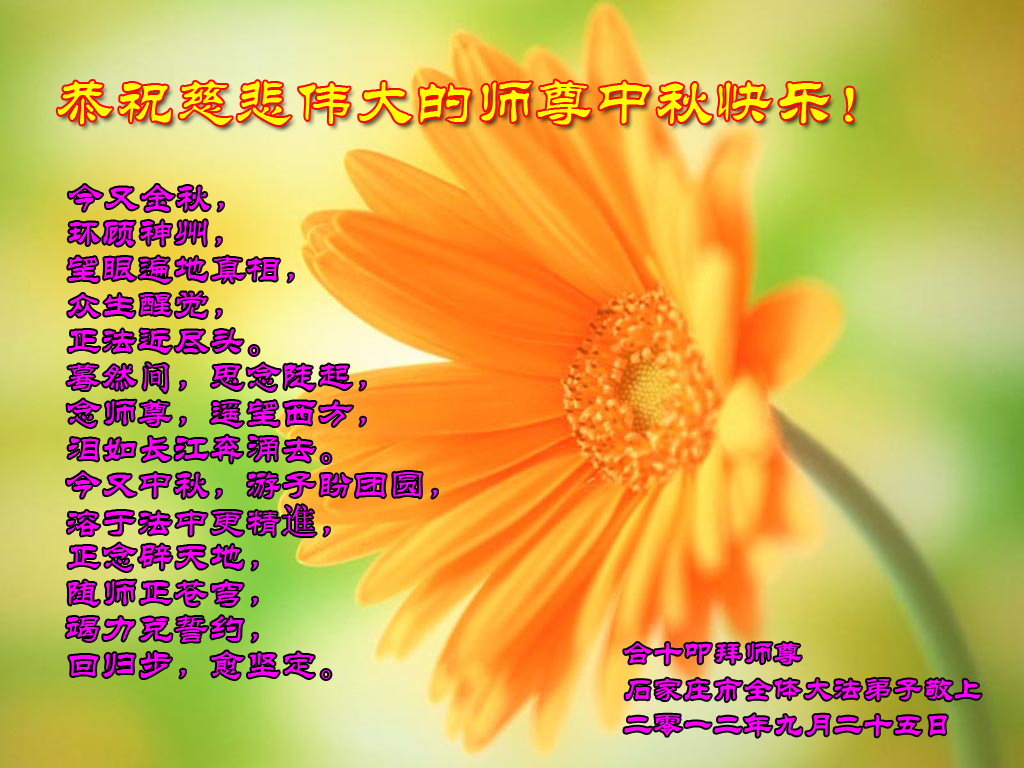 河北省石家庄全体大法弟子恭祝慈悲伟大的师尊中秋节快乐!