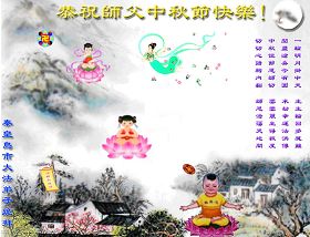 中秋节又到了,山东枣庄全体大法弟子向师尊问好!师父我们想念您,盼望能早日见到师父 河北衡水一学法小组大法弟子恭祝慈悲伟大的师父中秋节快乐!