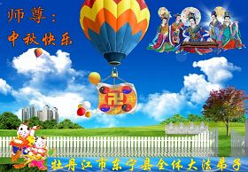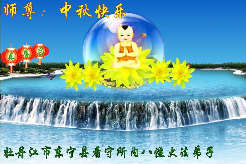 当我们沐浴着浩荡的佛恩,兑现着自己久远的誓约,加紧助师正法救度众生之际又迎来了大法洪传的第二十个中秋佳节,大陆弟子中秋之际倍感思念师尊,道一声师父辛苦了! 在此,河北省石家庄一研究所及家属院全体大法弟子叩拜师尊、感谢师尊的慈悲救度,恭祝慈悲伟大的师尊节日快乐! 石家庄某研究所及家属院全体大法弟子 二零一二年九月二十六日 黑龙江省牡丹江市宁安市大法弟子恭祝师父中秋快乐!
