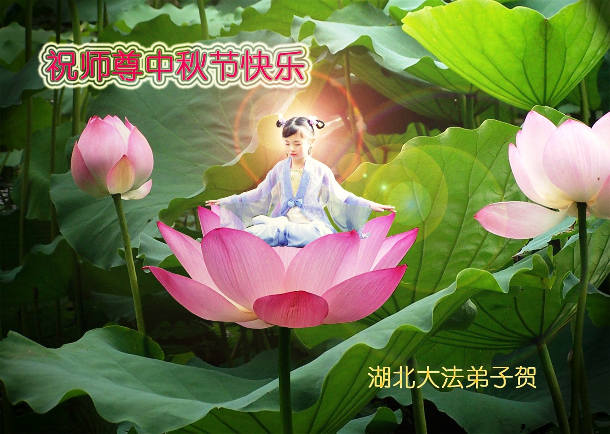 伟大的师尊您辛苦了!请师尊放心,我们会踏踏实实的做好三件事,抓紧救度更多的众生,整体提高,整体升华,稳健的走好最后的路,比学比修。珍惜这瞬间即逝的万古机缘,定不辜负师尊的慈悲苦度。弟子盼望师尊早日回大陆! 大陆湖北全家九名大法弟子恭祝师尊中秋节快乐!
