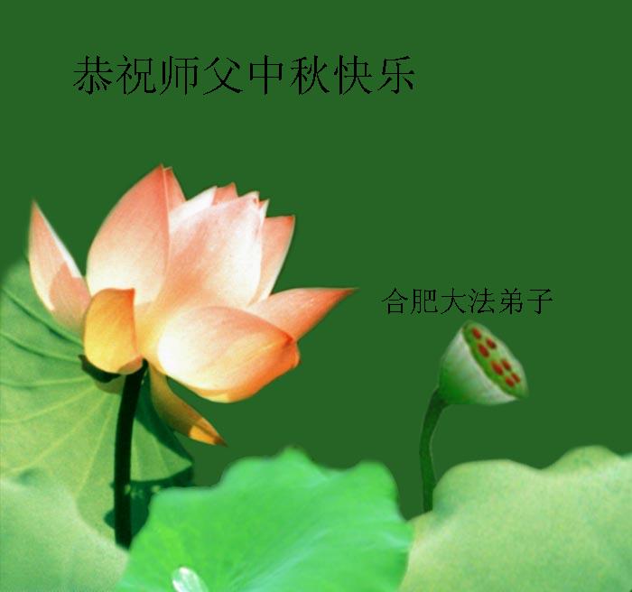 在这万民同乐,共赏月圆佳节之际,弟子想念恩师!对师尊的感恩将化做助师正法的动力、源泉,努力做好三件事,稳健走好每一步,除恶必尽。盼师尊早日回国与弟子们共赏圆月。永做师尊弟子,永随师尊。 四川遂宁市大法弟子及家人 二零一二年九月二十七日 安徽省合肥大法弟子恭祝师父中秋快乐!