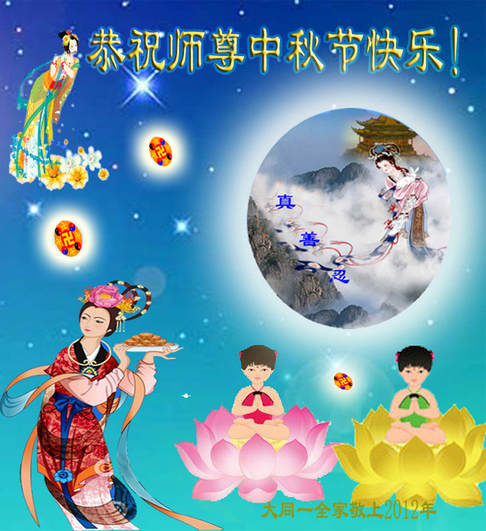 我们一定做好师父让座的三件事,让师父放心! 青岛大法弟子|敬上 2012年中秋节 大陆大法弟子及家人恭祝慈悲伟大的师尊中秋快乐!