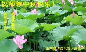 山东省潍坊一大法弟子全家祝慈悲的师父中秋节快乐!
