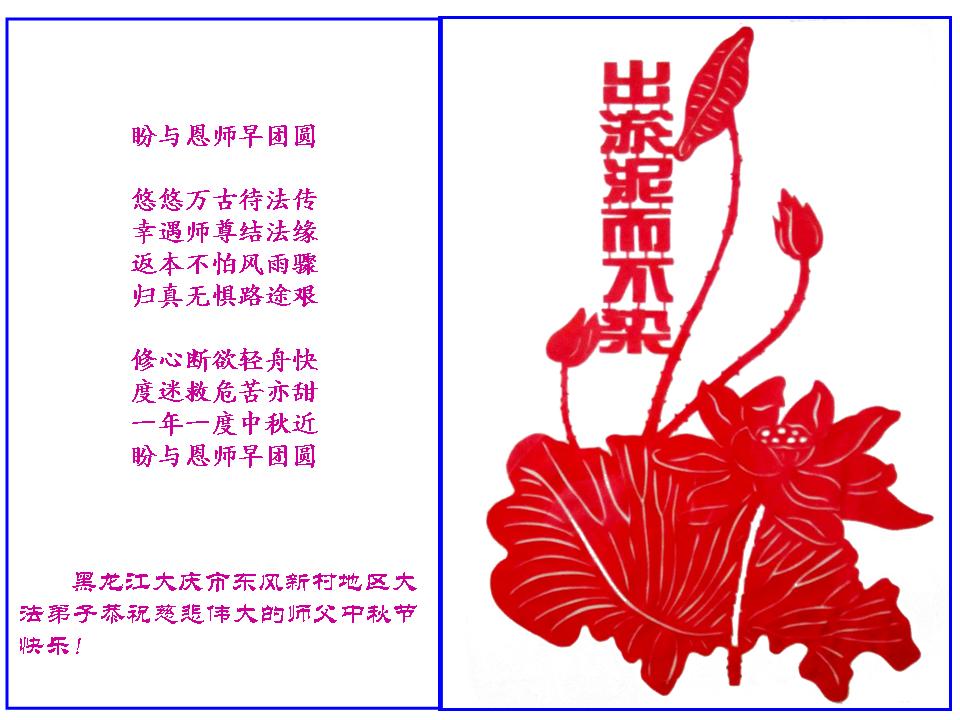 黑龙江大庆市东风新村地区大法弟子恭祝慈悲伟大的师父中秋节快乐!